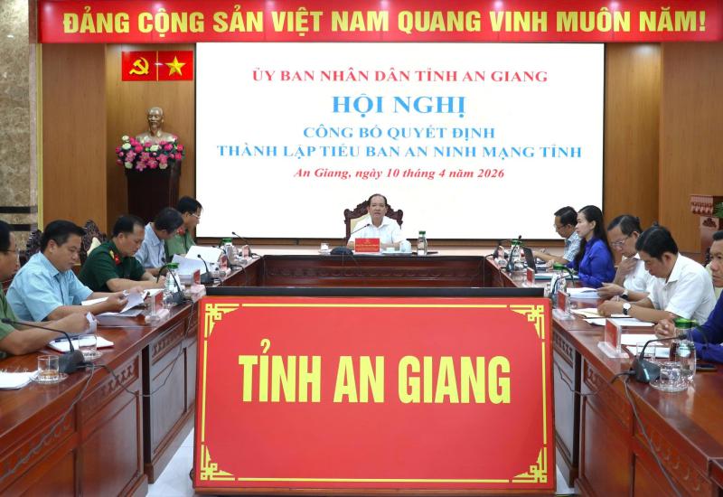(Cổng TTĐT tỉnh AG) – Ngày 10/4, UBND tỉnh tổ chức Hội nghị công bố Quyết định thành lập Tiểu ban An ninh mạng tỉnh An Giang; nghe báo cáo tiến độ thành lập Trung tâm An ninh mạng tỉnh.