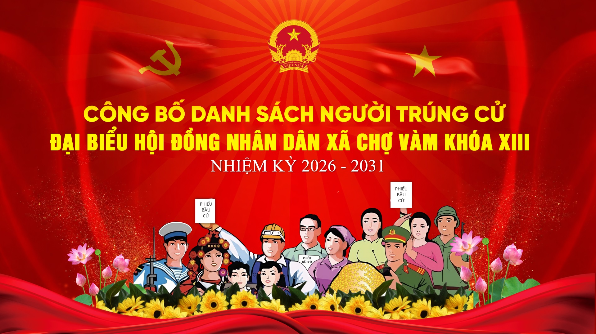 NGHỊ QUYẾT Công bố kết quả bầu cử và danh sách những người trúng cử đại biểu Hội đồng nhân dân xã Chợ Vàm khoá XIII, nhiệm kỳ 2026-2031