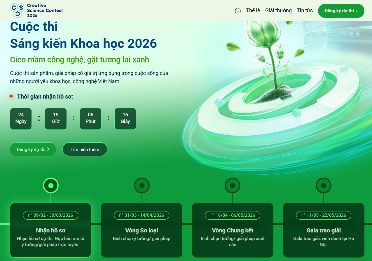 Hình thức đăng ký: Trực tuyến tại địa chỉ: https://vnexpress.net/khoa-hoc/cuoc-thi-sang-kien-khoa-hoc