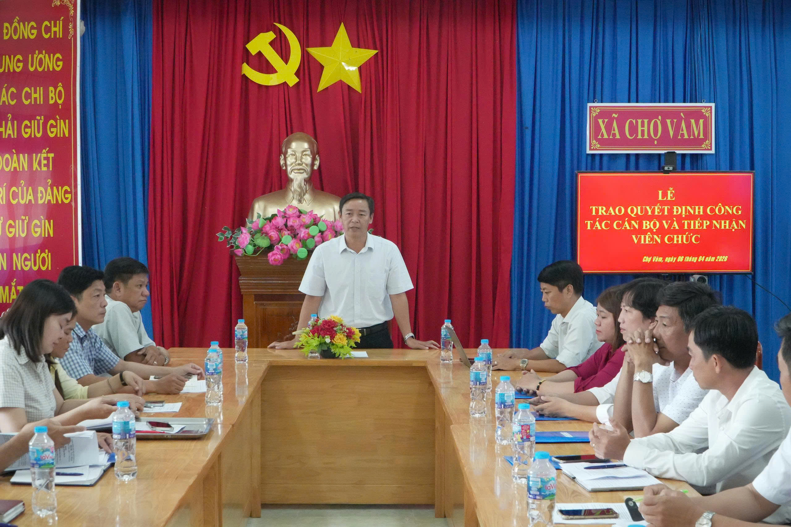 Sáng ngày 06/4/2026, Ủy ban nhân dân xã Chợ Vàm tổ chức lễ công bố và trao quyết định về công tác cán bộ. Tham dự có đồng chí Trần Tấn Lợi, Phó Bí thư Đảng ủy – Chủ tịch Ủy ban nhân dân, đồng chí Cao Phú Phây, Ủy viên Ban Thường vụ Đảng ủy – Chủ nhiệm Ủy ban kiểm tra Đảng ủy, đồng chí Đinh Thành Nhân, Ủy viên Ban Thường vụ Đảng ủy - Phó Chủ tịch Ủy ban nhân dân, đồng chí Phạm Hoàng Vũ, Ủy viên Ban Thường vụ Đảng ủy - Phó Chủ tịch Ủy ban nhân dân xã, cùng các đồng chí lãnh đạo các đơn vị trực thuộc Ủy ban nhân dân xã.