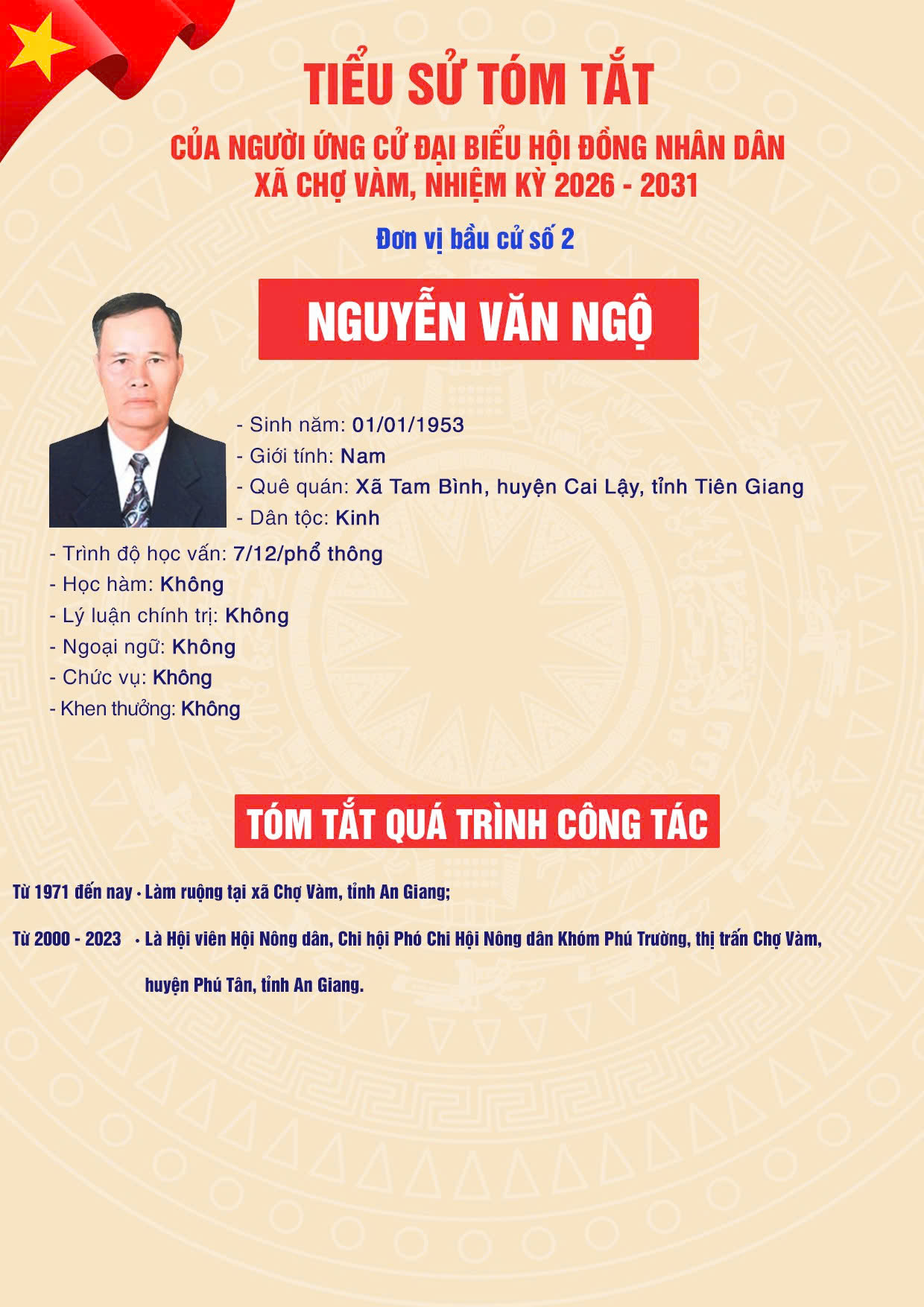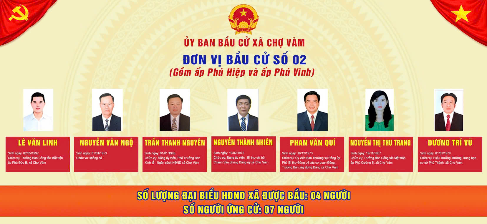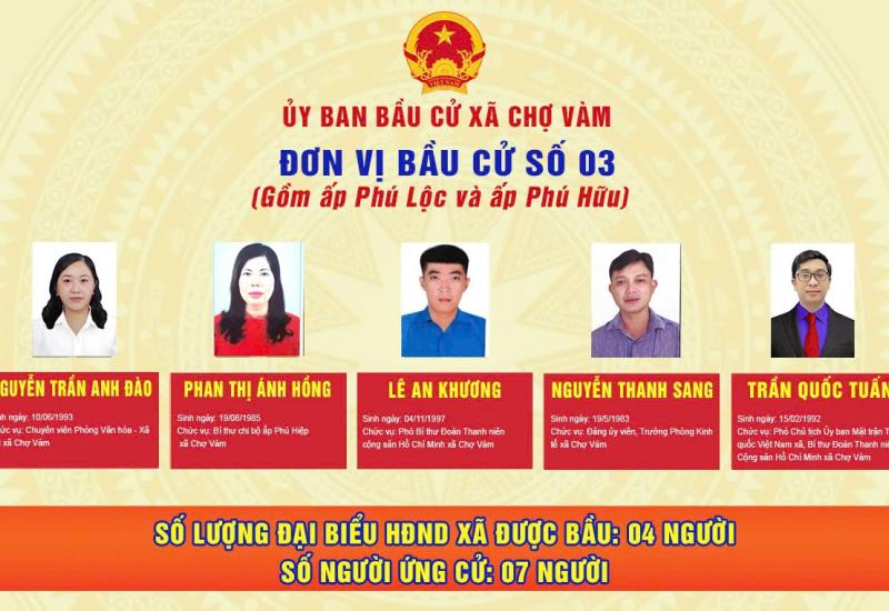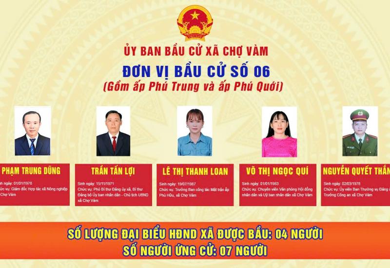 ỦY BAN BẦU CỬ XÃ CHỢ VÀM - Đơn vị bầu cử số 02: Gồm ấp Phú Hiệp và ấp Phú Vinh