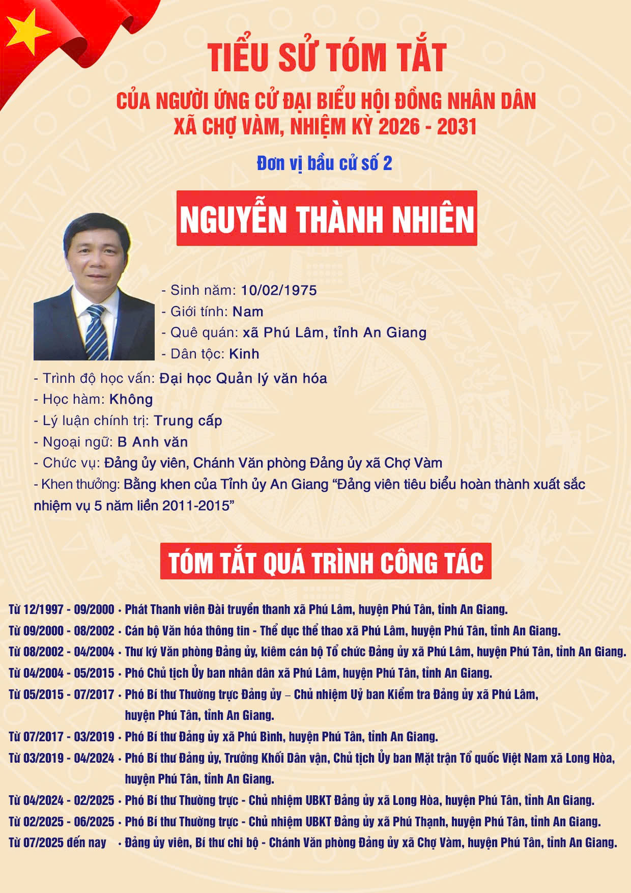 4. Ông NGUYỄN THÀNH NHIÊN – Đảng ủy viên, Chánh Văn phòng Đảng ủy xã Chợ Vàm, tỉnh An Giang