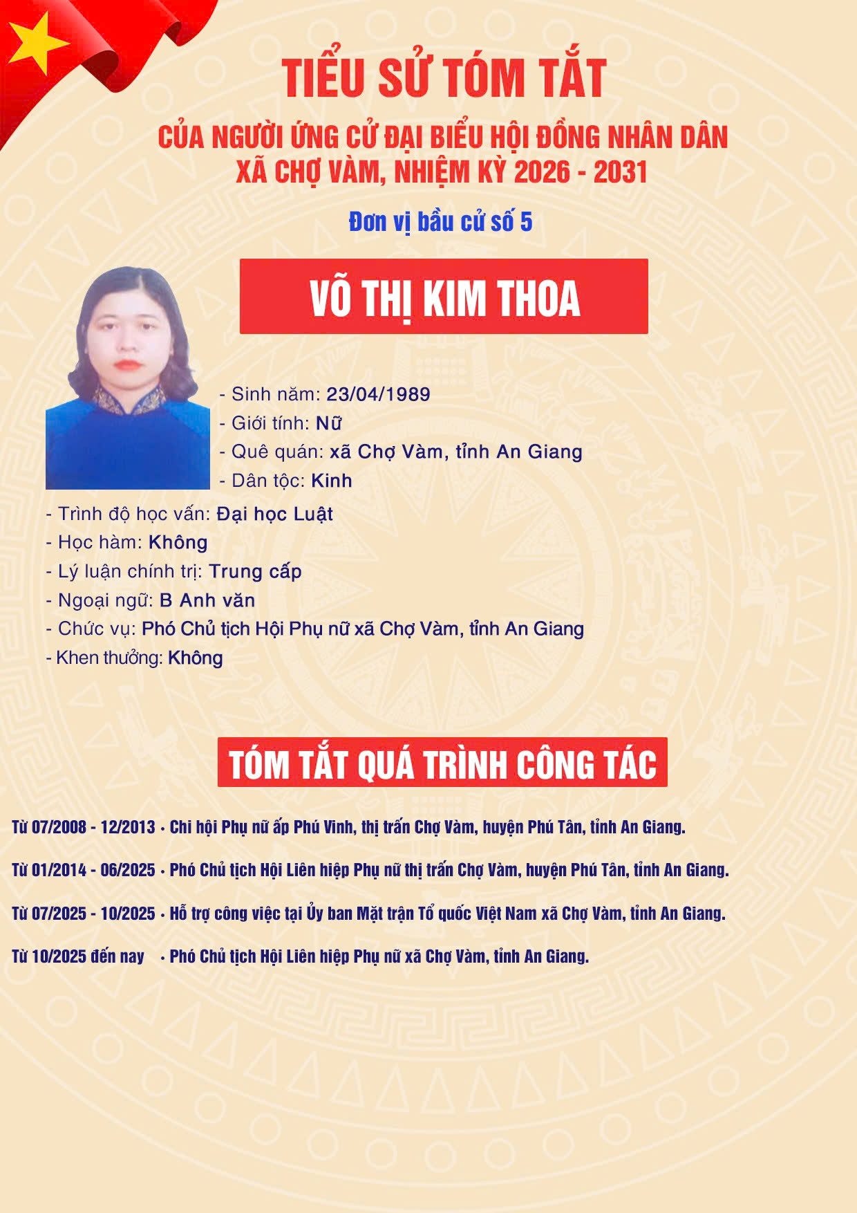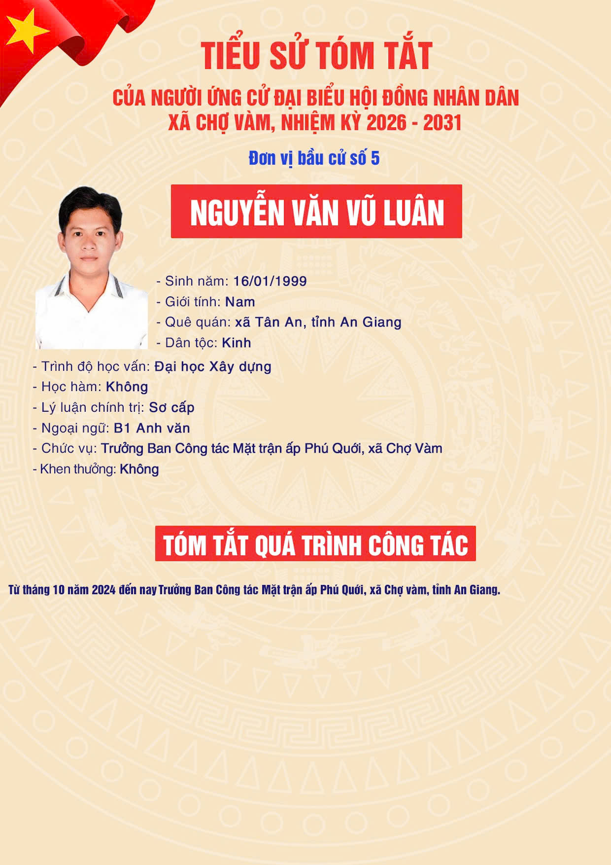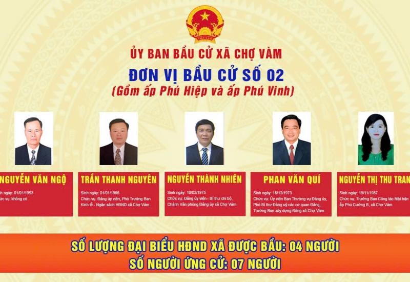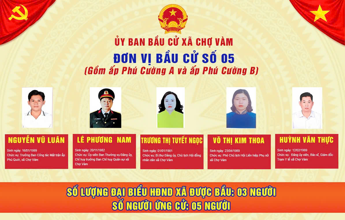 ỦY BAN BẦU CỬ XÃ CHỢ VÀM - Đơn vị bầu cử số 05: Gồm ấp Phú Cường A và ấp Phú Cường B