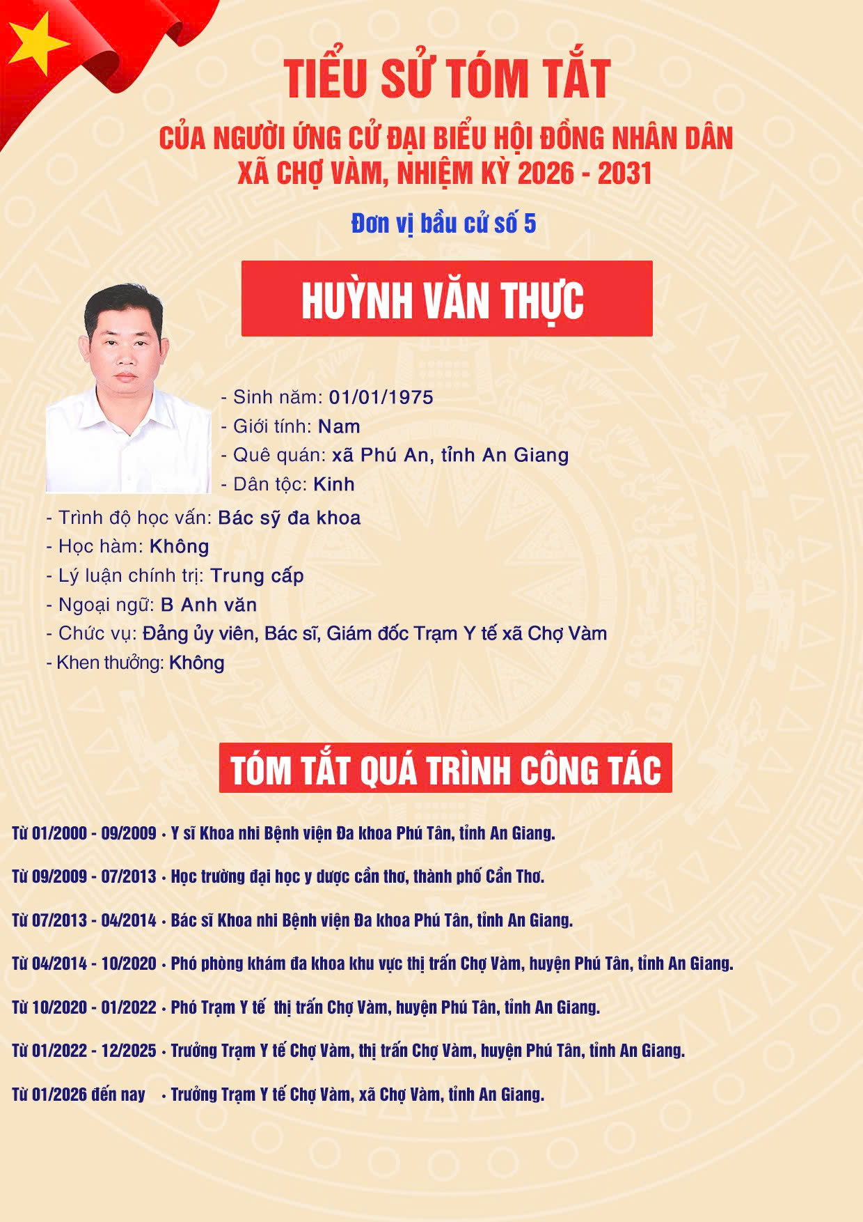 5. Ông HUỲNH VĂN THỰC – Đảng ủy viên, Bác sĩ, Giám đốc Trạm Y tế xã Chợ Vàm, tỉnh An Giang.