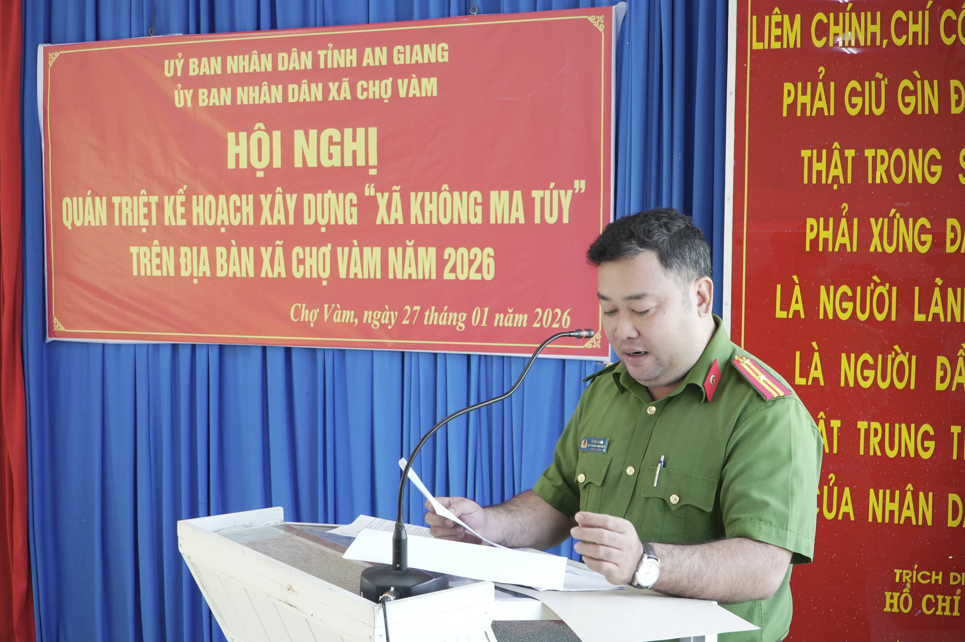 Xã Chợ Vàm tổ chức hội nghị quán triệt Kế hoạch xây dựng xã không ma túy năm 2026